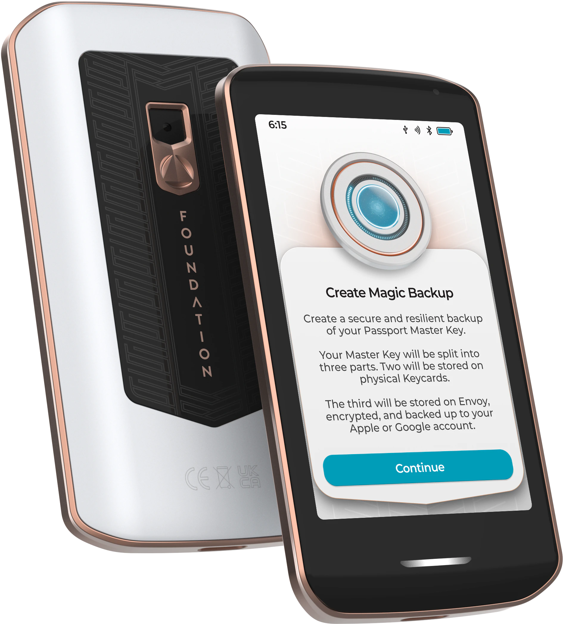 Magic Backups are our simple yet extremely secure method to ensure you never lose access to your Passport Prime data. Despite the unrivaled convenience offered, Magic Backups are constructed in such a way that neither Foundation, nor your chosen cloud provider (Google or Apple) can steal your funds or see your data.
