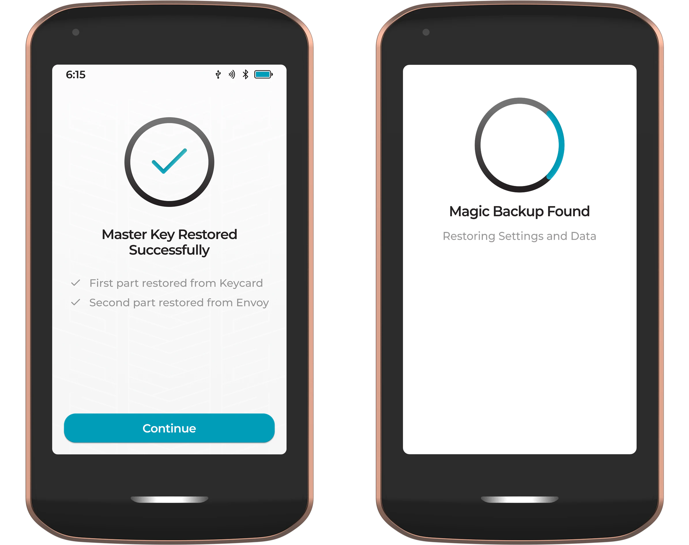 - On the Master Key setup screen, tap restore.
