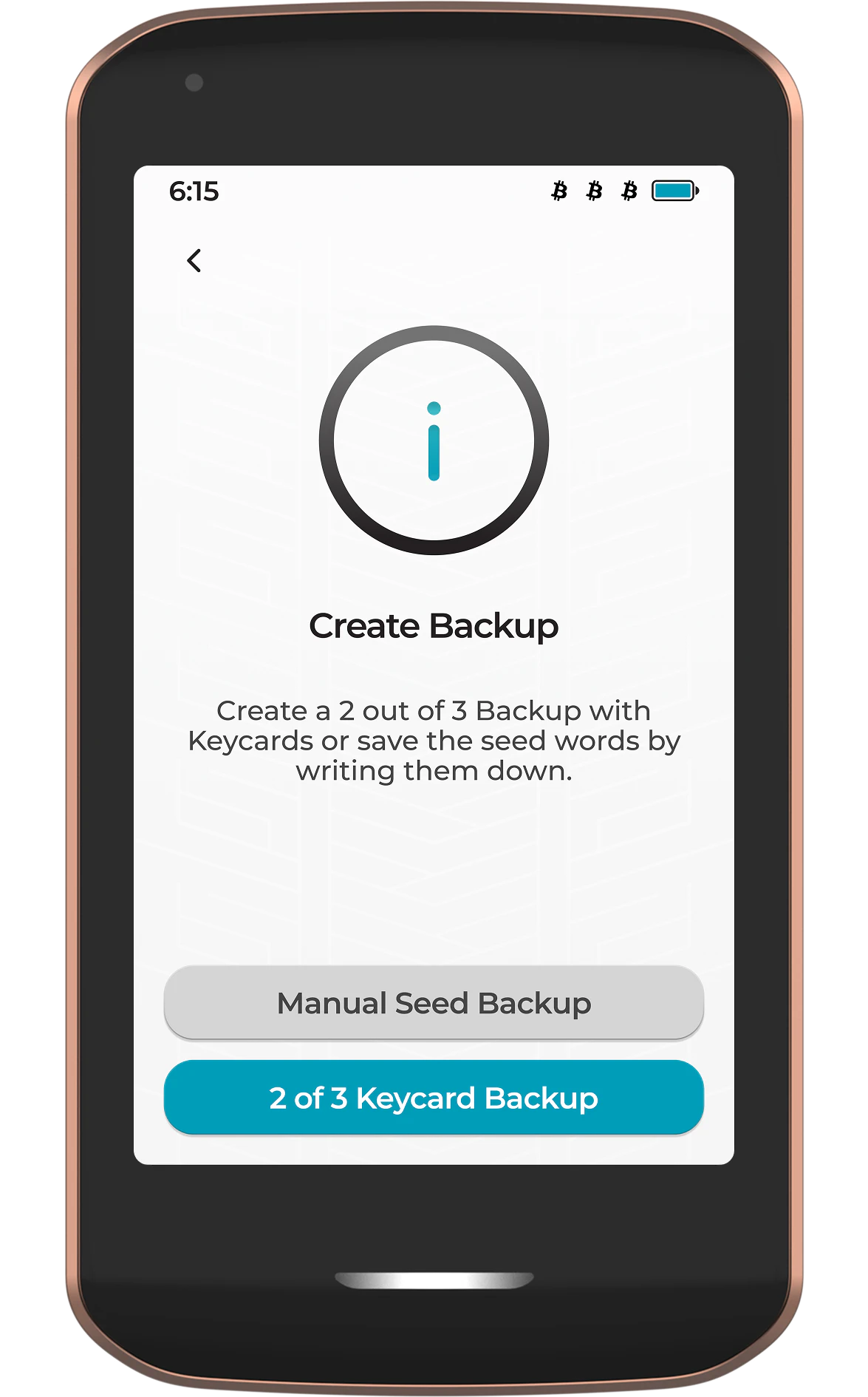 When you secure your digital life with Passport Prime, you are in full control of your money and data. This means you are also completely responsible for ensuring your money and data are backed up safely and securely, such that it is not lost to any single point of failure.