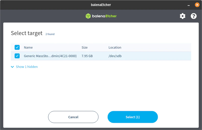 Open Balena Etcher and click Flash from file. Then choose the downloaded firmware file ending in .bin.