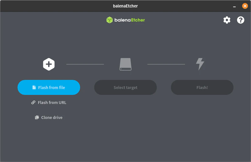 Open Balena Etcher and click Flash from file. Then choose the downloaded firmware file ending in .bin.