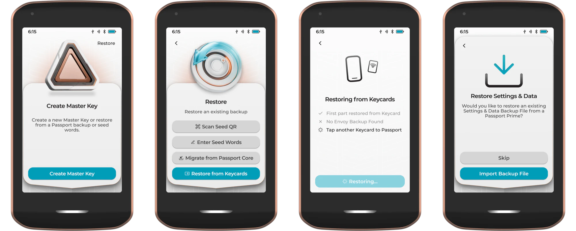 After restoring any Master Key to Prime, the device will allow the user to restore a corresponding Settings & Data backup file.