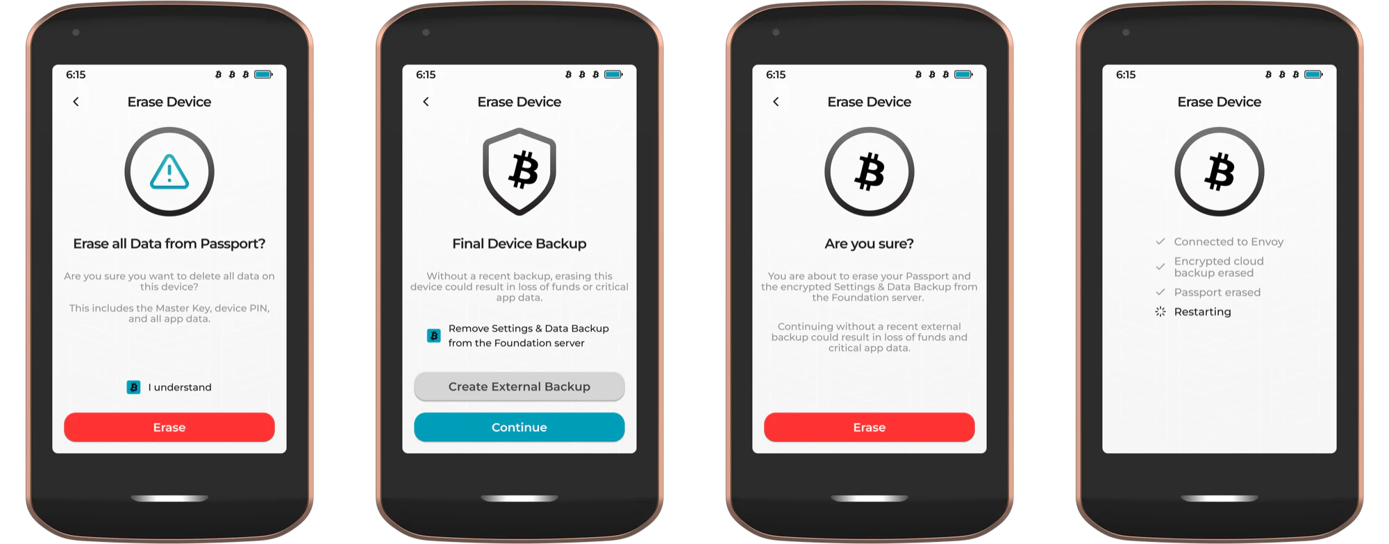 Erase all data from Prime. This includes the Master Key, device PIN, and all app data.