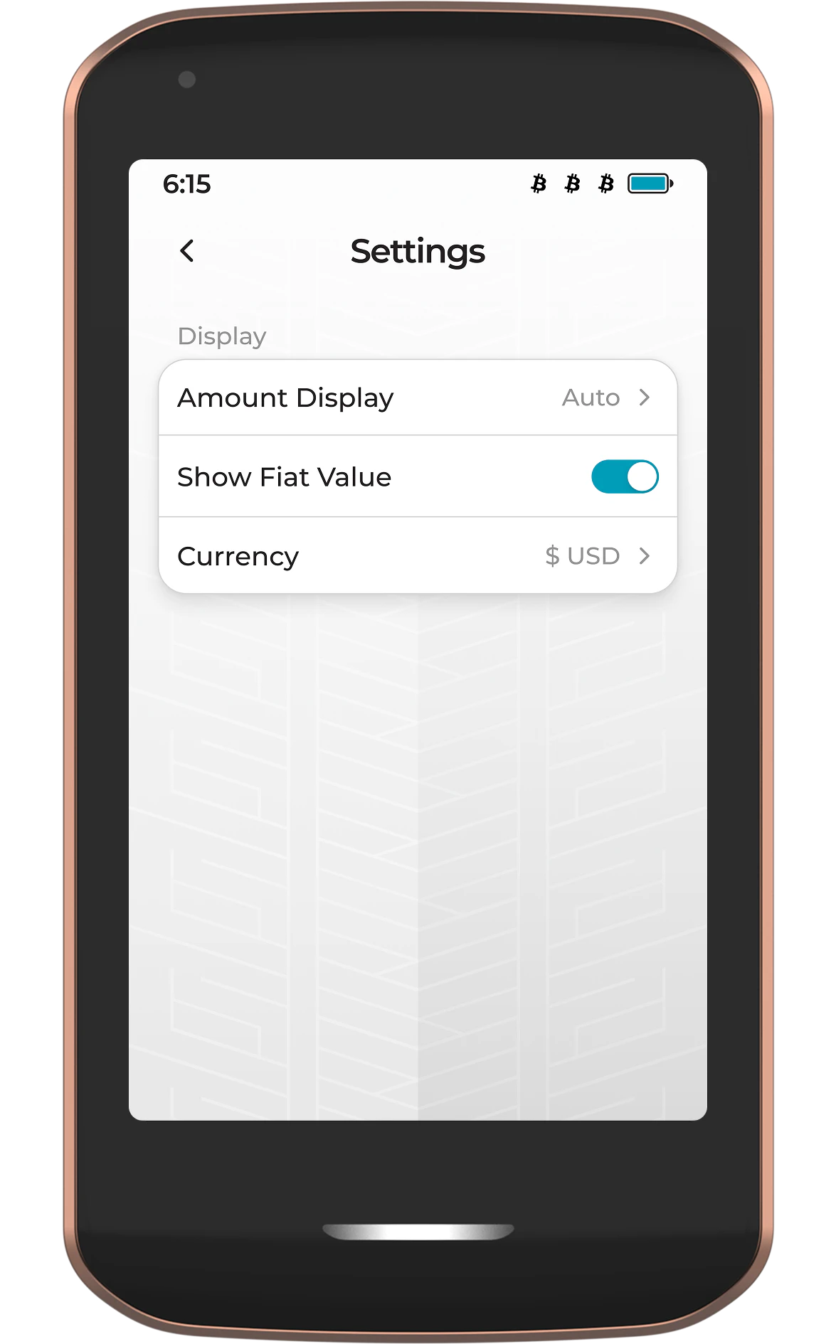 - Amount Display - Have transaction amounts displayed in BTC or Sats